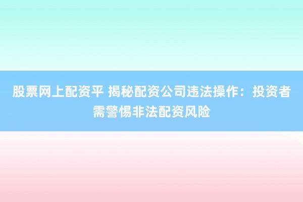 总之,非法配资是一场没有赢家的游戏。投资者在追求高收益的同时股票网上配资平,务必保持清醒的头脑和审慎的态度。只有远离非法配资的陷阱,我们才能在投资的道路上走得更远、更稳。